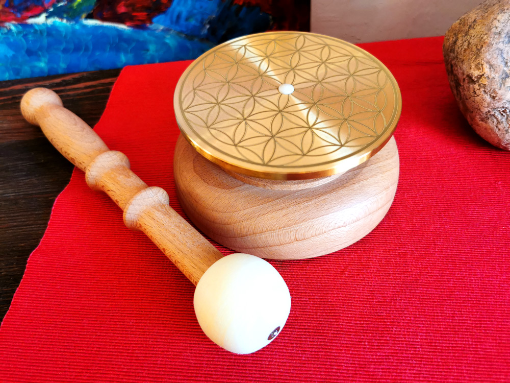 Било с символом Цветок Жизни даёт чистый высокий тон с лёгкими обертонами, удобный для тонкой настройки состояния и пространства.